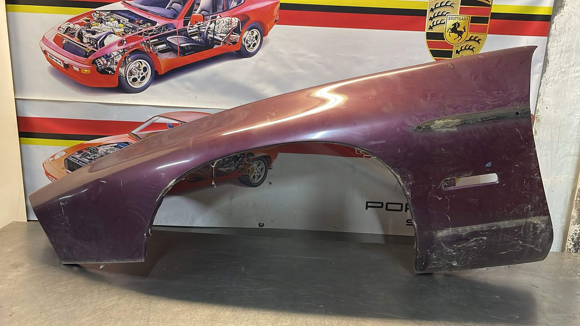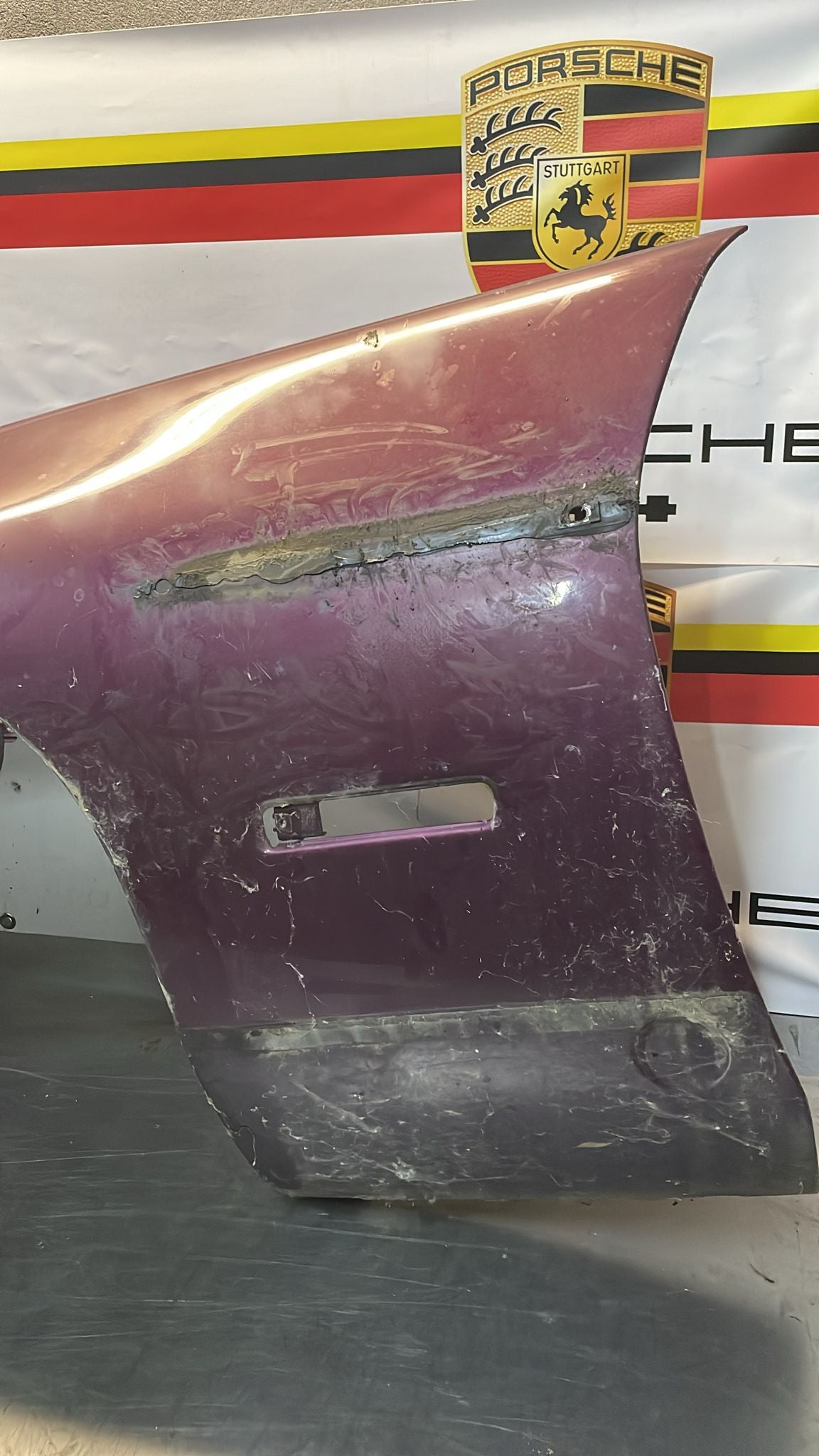 Porsche 928 S4 GT front left wing, used, 92850301111