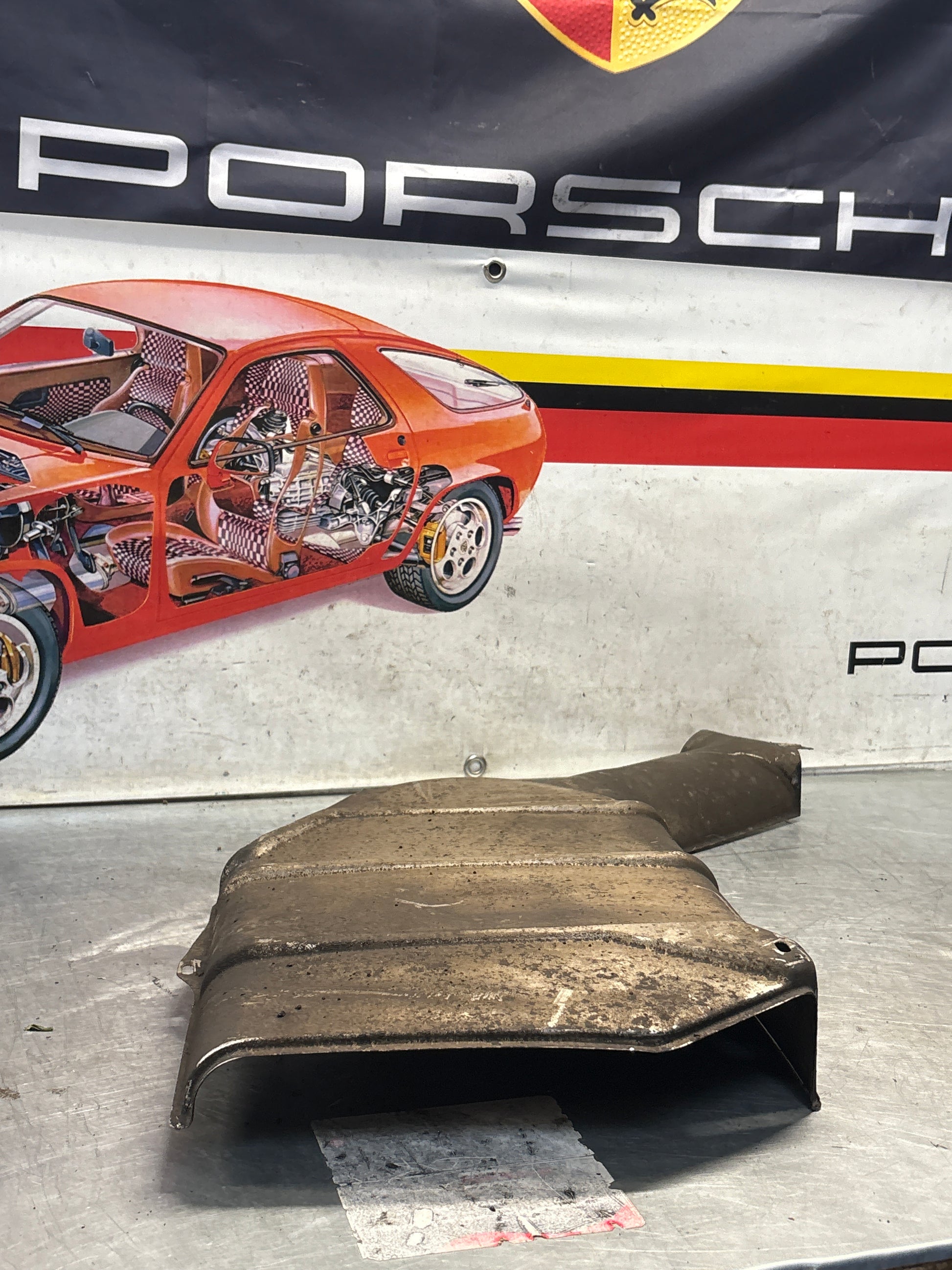 Porsche 928 heat shield protection plate 92850493104 Later type with ribs, used