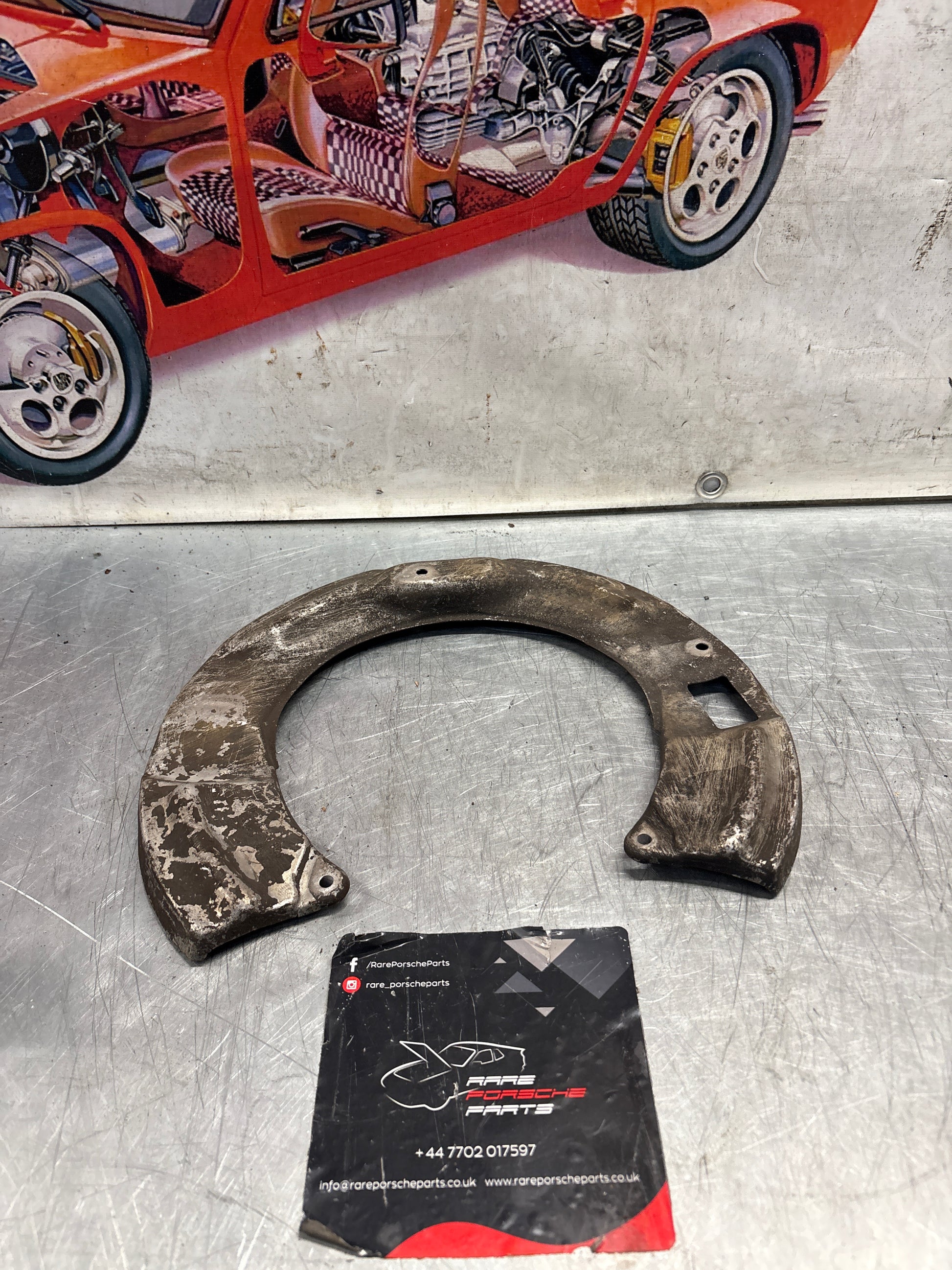 Porsche 928S4 rear left brake dust cover plate, used