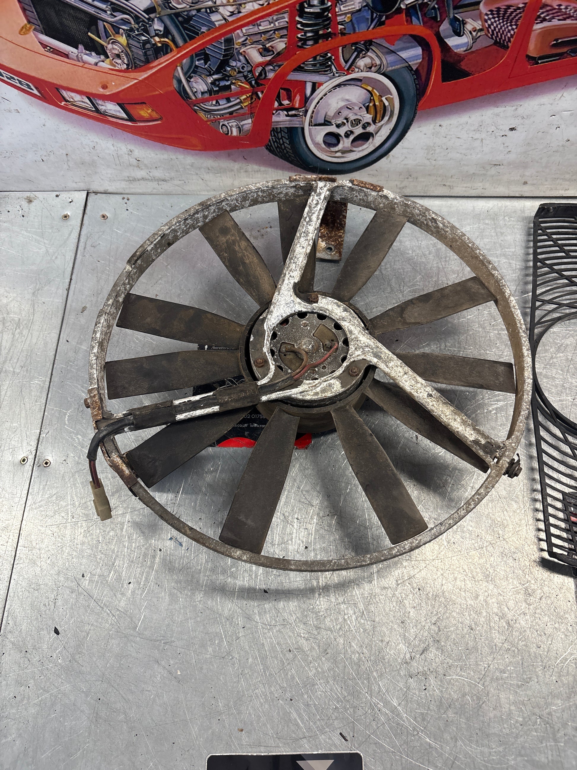 Porsche 928, 80- Air conditioner condenser cooling fan, genuine 92862410301 used