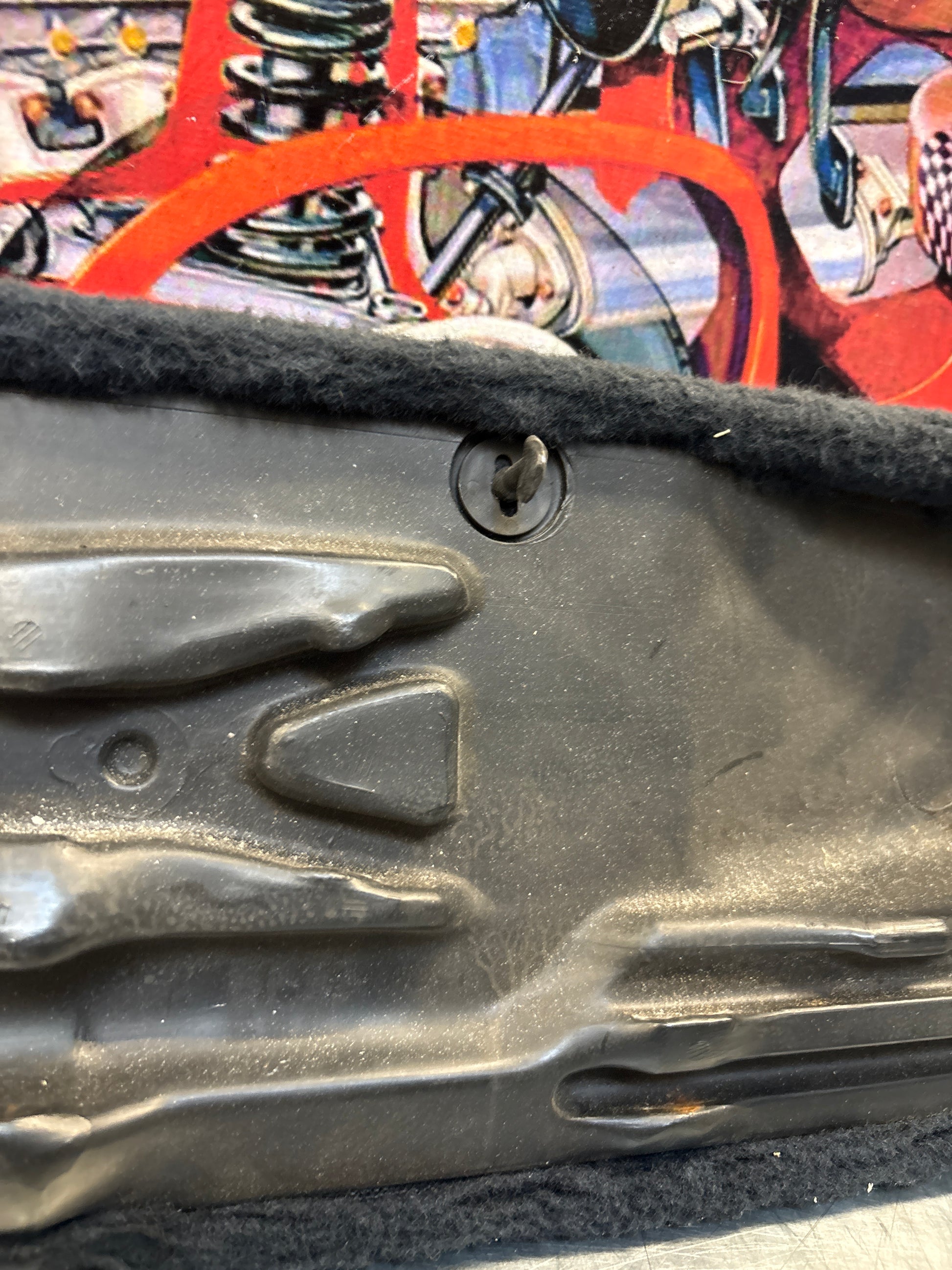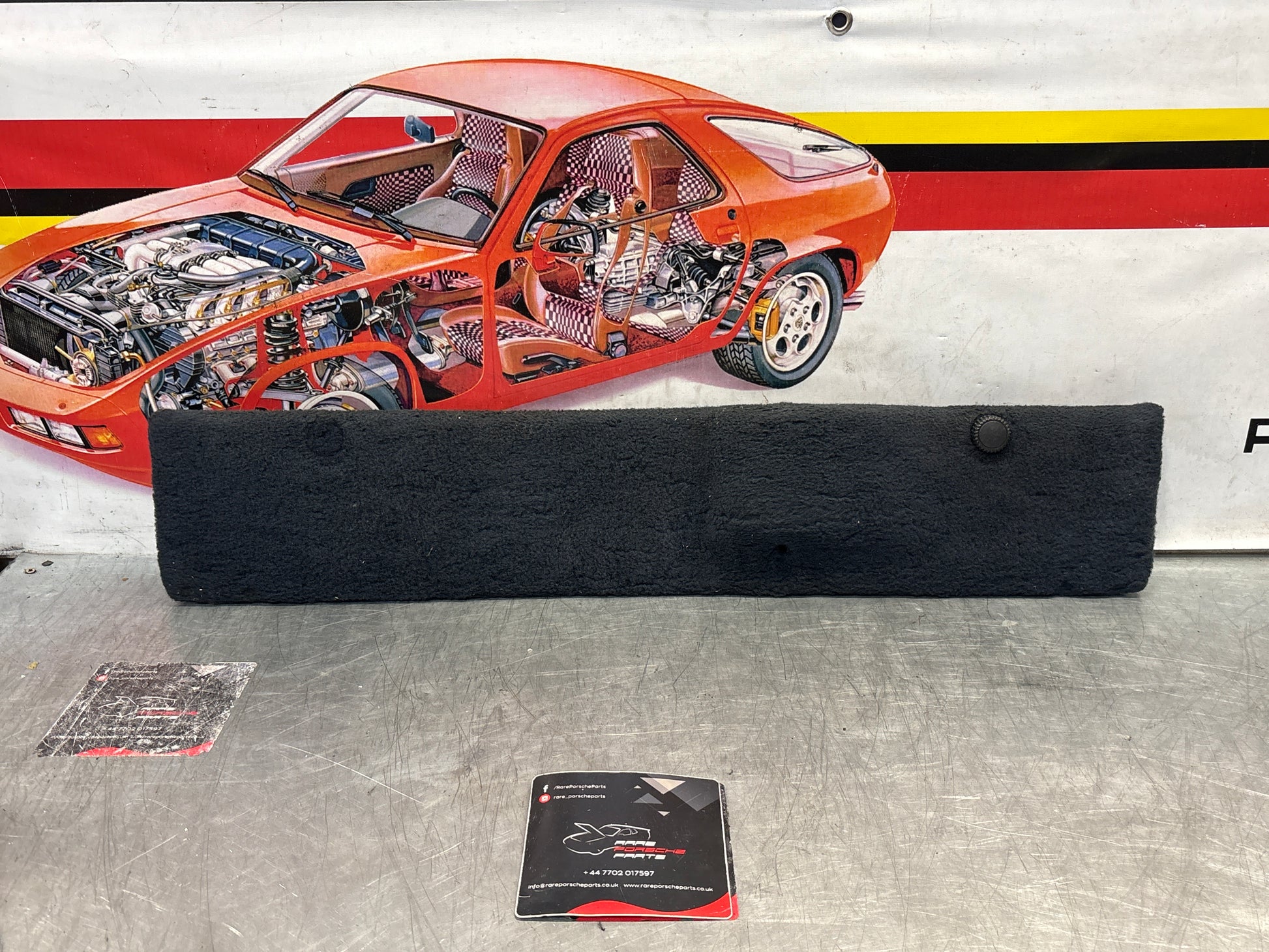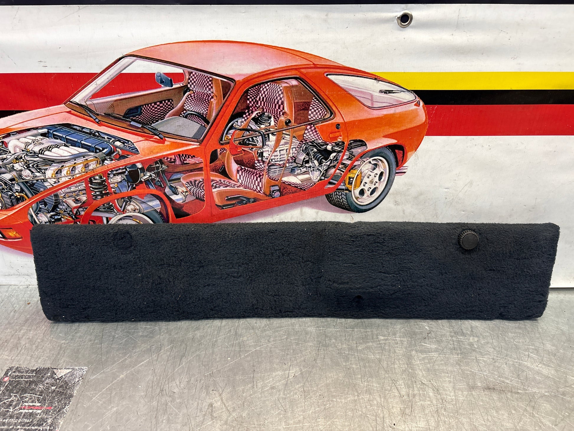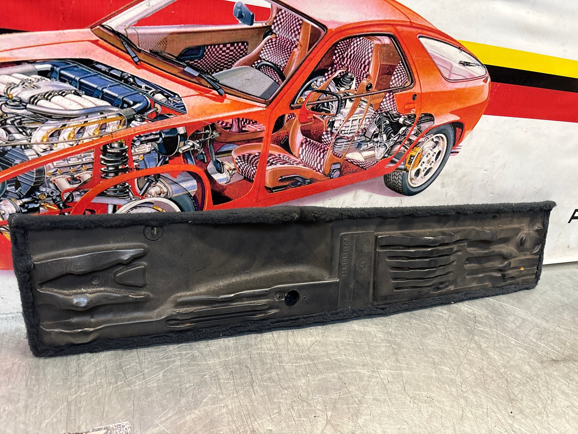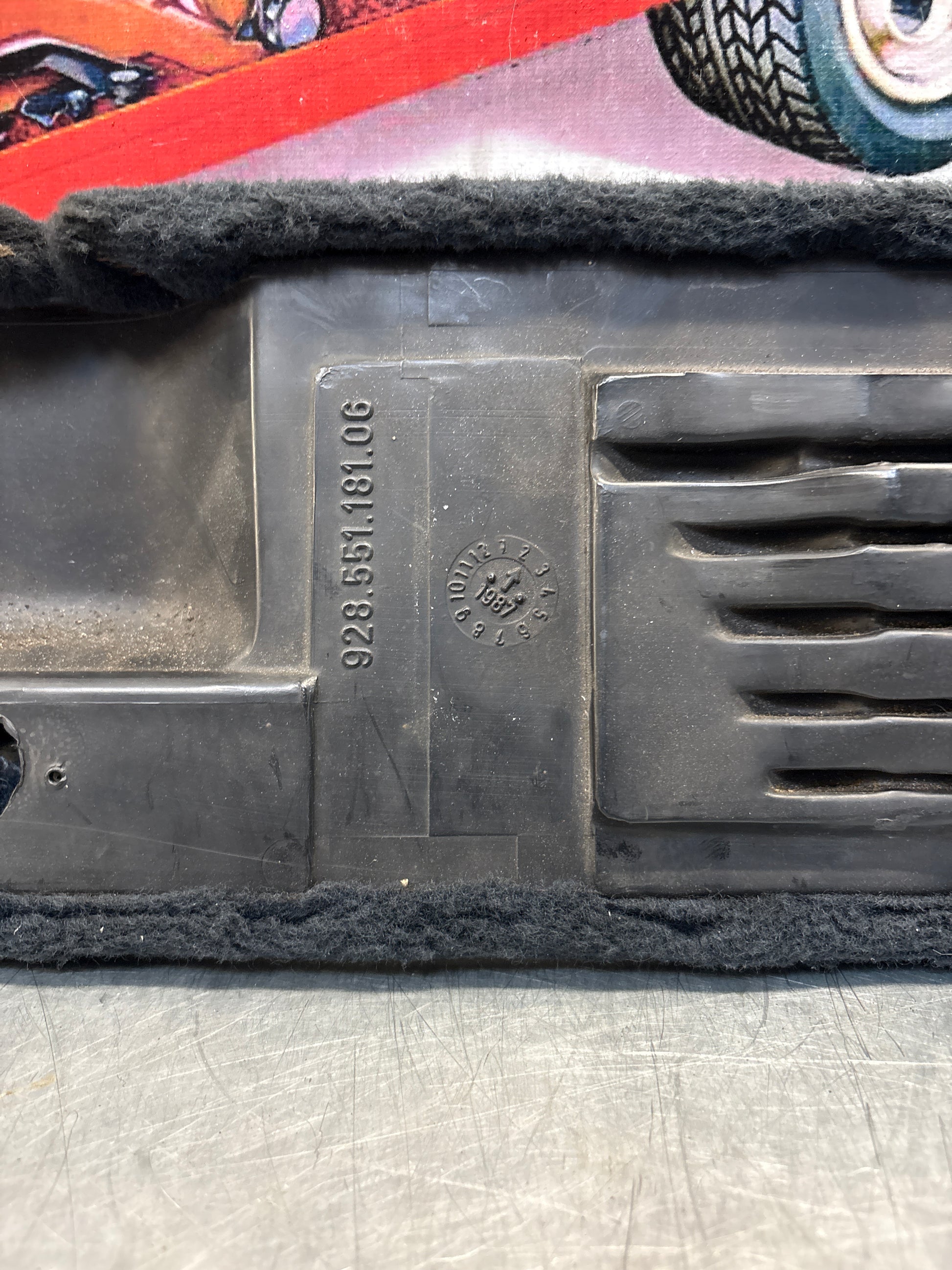 Porsche 928 black carpeted Tool kit panel cover, used