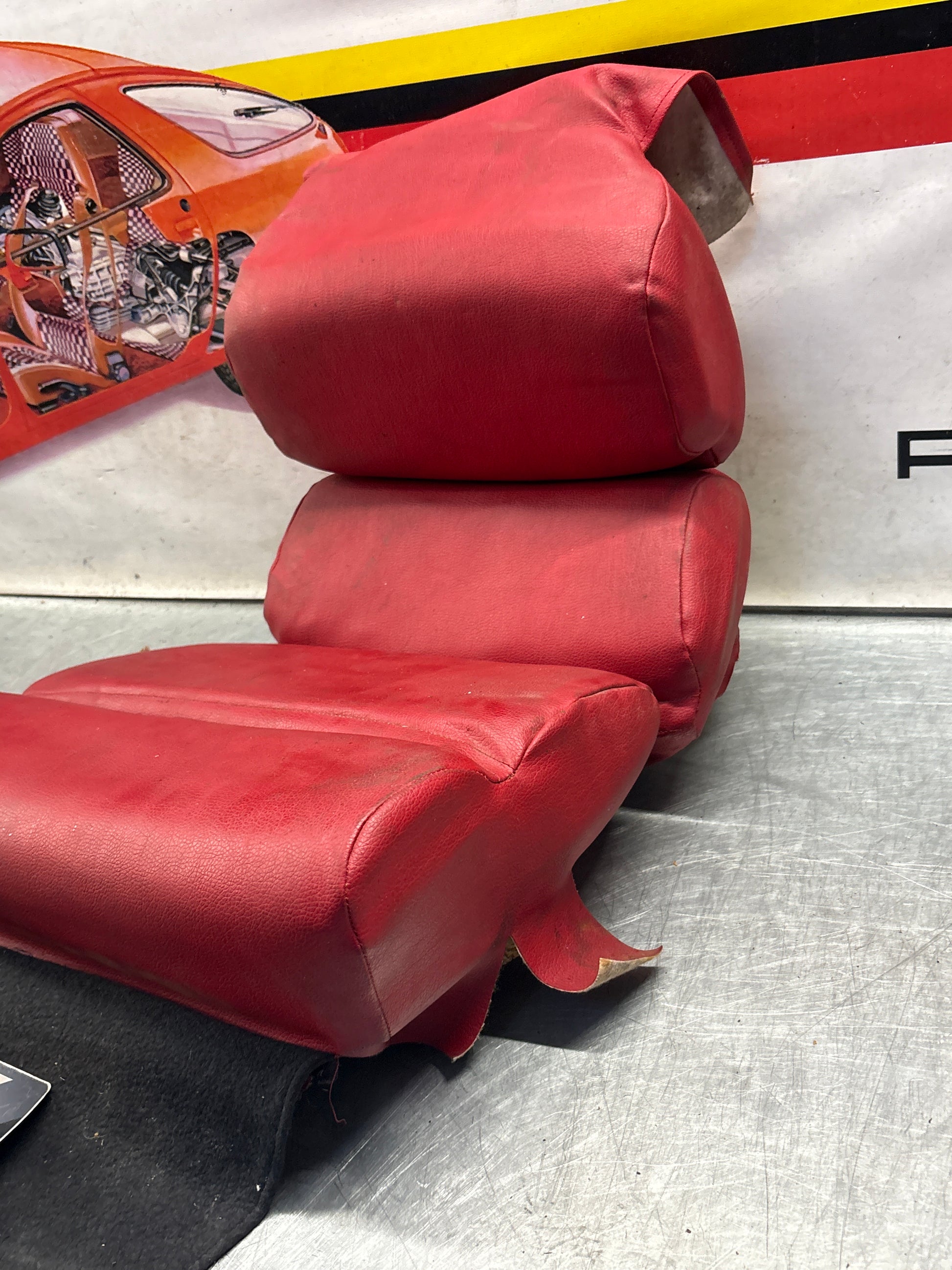 Porsche 928 rear right seat and center + upper cushion, used, can-can red 92852206051 / 92852208851 / 92852204650