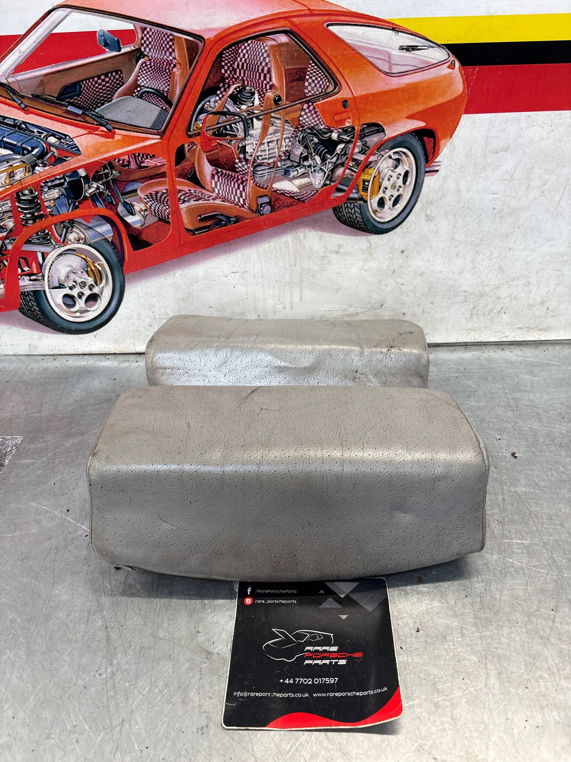 Porsche 928 rear left seat upper and middle cushion, leather, grey, used