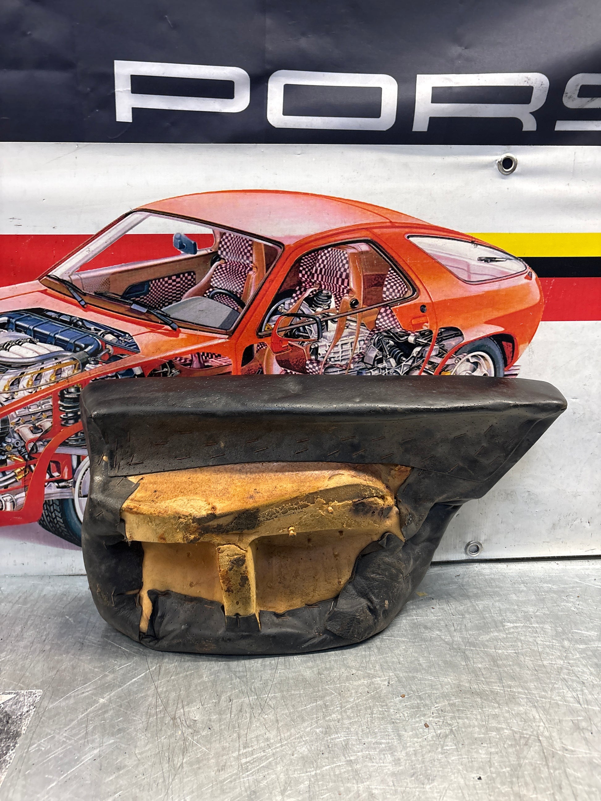 Porsche 928 rear left seat cushion, black, leather, used
